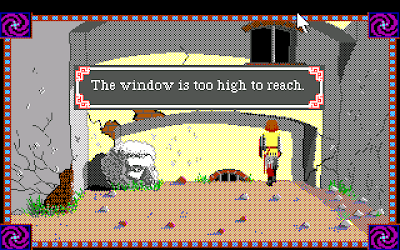 I spent ages at this section, despite being pretty much correct straight up! The first thing I did was count six pillars counter clockwise from where Aphrodite was standing, then thinking I had the correct pillar, typed “look beneath pillar”. It didn’t work, so I tried typing a heap of other alternatives. I began to doubt myself, and tried counting pillars from what would be twelve o’clock, then a bunch of other illogical solutions (including spending more time in the alley and alcove). Eventually I came back to that first pillar and typed “push pillar”, and watched as Arthur moved it aside and collected the Grail from within! I was instantly healed, and determined to save Camelot from the curse that had put my quest in motion to begin with. I was in the motion of sitting back in victorious reflection, when that damn thief that stole my purse in Jerusalem returned to steal the Grail! I chased him into the alley (so it did have a purpose after all!) and watched in horror as he went for a rope leading up to the window. Fortunately, it broke as he grabbed it, causing him to fall to the ground with nowhere to go. “Mercy, master, mercy! I am only a poor, miserable wretch! Have mercy!” I then had the choice as to whether I would kill the thief or not, so I decided to let him live, taking the Grail and turning to leave him. He lunged at me as if to stab me in the back!